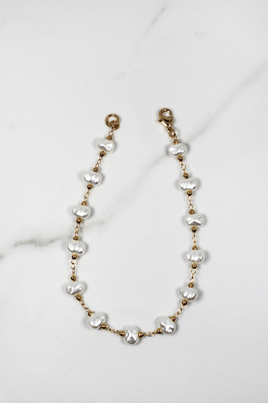 This 14k gold plated  and faux pearl chain anklet is the perfect mix of classic and modern. Featuring luminous pearls and a rich gold-filled, it’s a versatile piece that adds just the right touch of shine to any outfit. Wear it solo for a timeless look or layer it with your favorite anklets for a stylish statement.