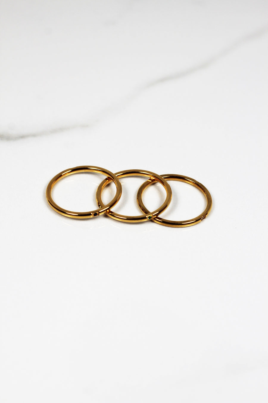 These stainless steel three-stone band rings are designed to make a statement! With a sleek 1.3mm band and vibrant stone options—clear, emerald, or sapphire—they’re the perfect blend of modern style and classic charm. Tarnish-resistant and built to last, these rings add the perfect pop of color to any look. Whether stacked or worn solo, they’re a must-have addition to your jewelry collection!