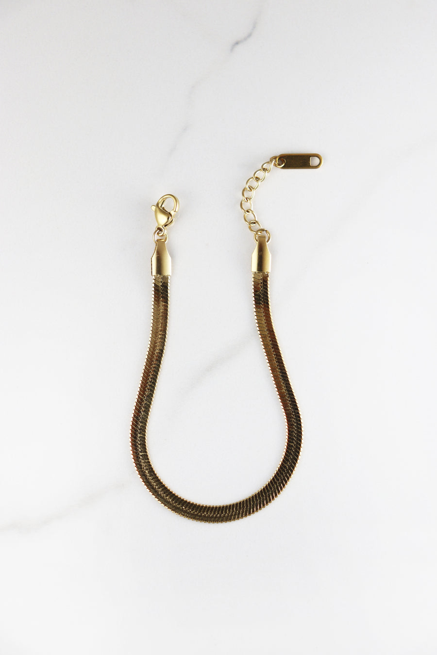 Upgrade your look with our Herringbone Bracelet. Made with 18k gold plated stainless steel, this waterproof bracelet is perfect for adding a touch of elegance to any outfit. Wear it alone or stack it with other bracelets for a chic look. A must-have for any jewelry collection!