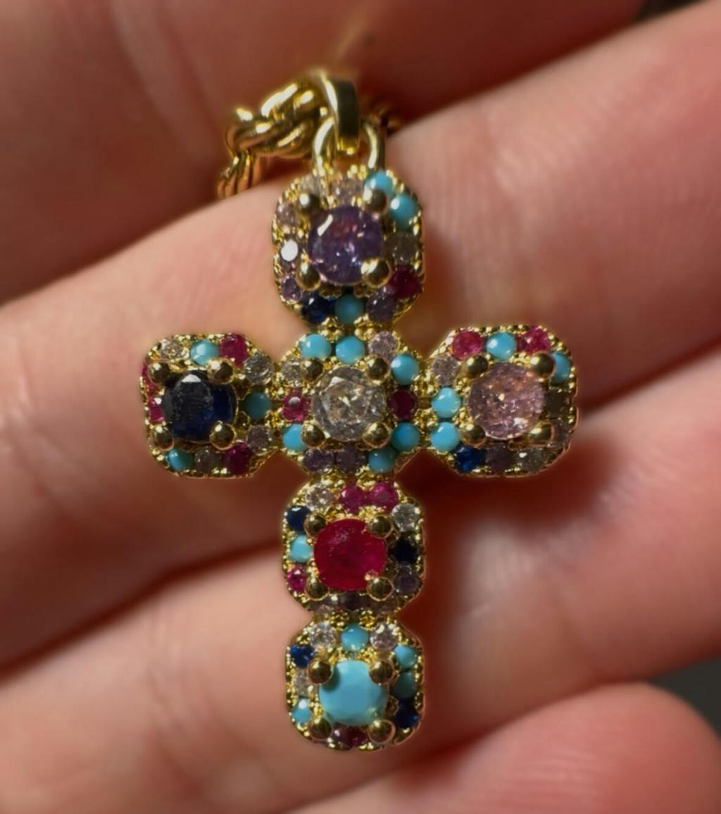 The Monica Cross Necklace features a 14k gold-plated stainless steel rope chain, accented with a sparkling CZ stone. Available in two ideal lengths for layering, it’s the perfect blend of faith and a timeless touch.