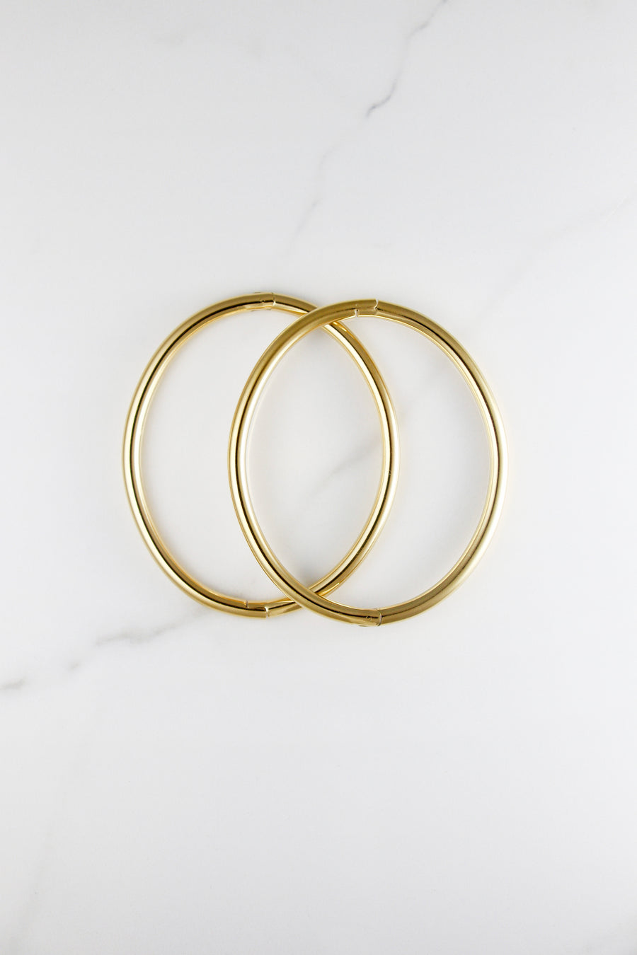The Core Bangle Bracelet set features two elegantly designed bangles that open and close for easy wear. Crafted to fit comfortably around the wrist, these bracelets are both water-proof and tarnish-resistant, ensuring lasting durability and a polished look. Ideal for everyday use, they combine practical functionality with timeless style.