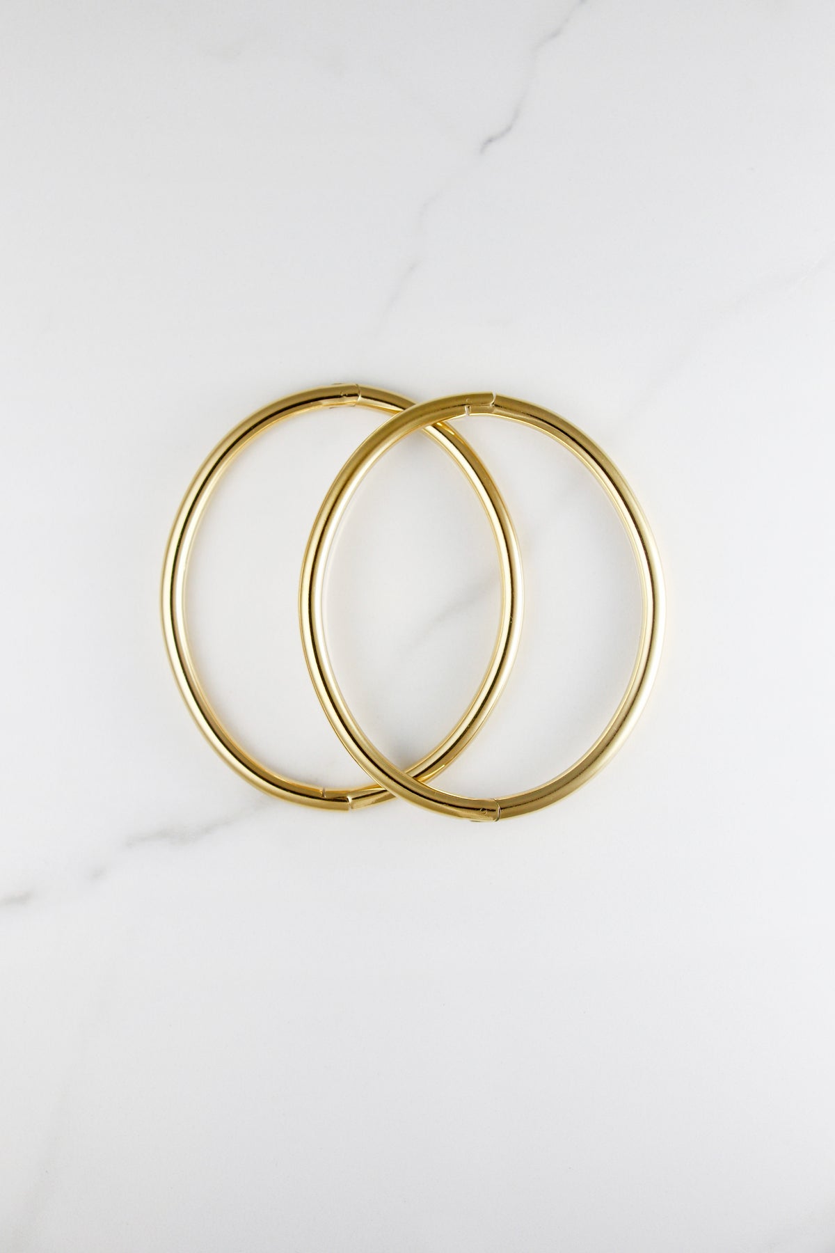 The Core Bangle Bracelet set features two elegantly designed bangles that open and close for easy wear. Crafted to fit comfortably around the wrist, these bracelets are both water-proof and tarnish-resistant, ensuring lasting durability and a polished look. Ideal for everyday use, they combine practical functionality with timeless style.